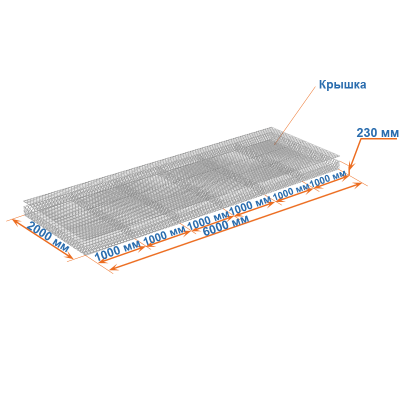 Габион матрац ГСИ-М 6х2х0,23 оцинкованный / ЦП, Ø проволоки 2,4/3,4 мм, размер ячейки 6х8 см фото