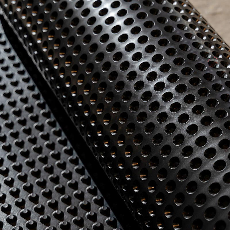 Профилированная поверхность с высотой шипа 20 мм формирует воздушно-дренажный слой между конструкцией и грунтом. За счет этого вода отводится по организованному каналу, снижается гидростатическое давление на подземную часть здания, а гидроизоляционный слой получает дополнительную защиту при обратной засыпке и эксплуатации.
